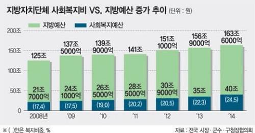 무상보육과 무상교육, 기초연금까지 더해져 자치단체들이 부담하는 사회복지비용은 40조가 훌쩍 넘었다.