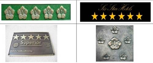 관광진흥법상 특1급의 경우 무궁화를 6개로 규정하고 있으나 시행규칙인 현판 제작상 유의사항에는 5개로 기재됐었다. 일부에서는 임의로 무궁화 대신 별로 대체하여 현판을 사용하기도 했다.