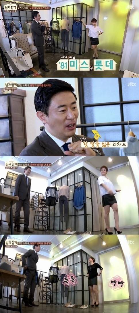 '님과 함께' 김범수가 안문숙의 숨겨둔 각선미에 놀라움을 금치 못했다.지난 17일 방송된 JTBC 재혼 미리보기 '님과 함께'에서는 썸 커플로 등장해 화제가 된 김범수 안문숙이 고정출연을 확정짓고 첫 데이트를 즐기는 모습이 공개됐다.이날 김범수는 안문숙과의 공식적인 첫 데이트를 맞아 옷가게 들렀다. 김범수는 "영화 '귀여운 여인'을 가장 감명 깊게 봤다"고 밝혔다. 이에 김범수는 영화 속 리처드 기어처럼 여자한테 옷을 사주는 그대로 장면을 재현했다.옷가게에서 김범수는 보이시한 스타일을 선호하는 안문숙에게 치마를 권했고, 안문숙은 "난 진짜 하체가 잘 빠졌다"라며 자신감을 드러냈다.이후 안문숙은 미니스커트를 입고 늘씬한 각선미를 자랑하며 포즈를 취했다. 안문숙의 여성스러운 모습에 김범수는 입을 다물지 못하며 "정말 예쁘다"고 감탄했다.[안문숙 김범수, 사진=JTBC '님과 함께' 방송 캡처]