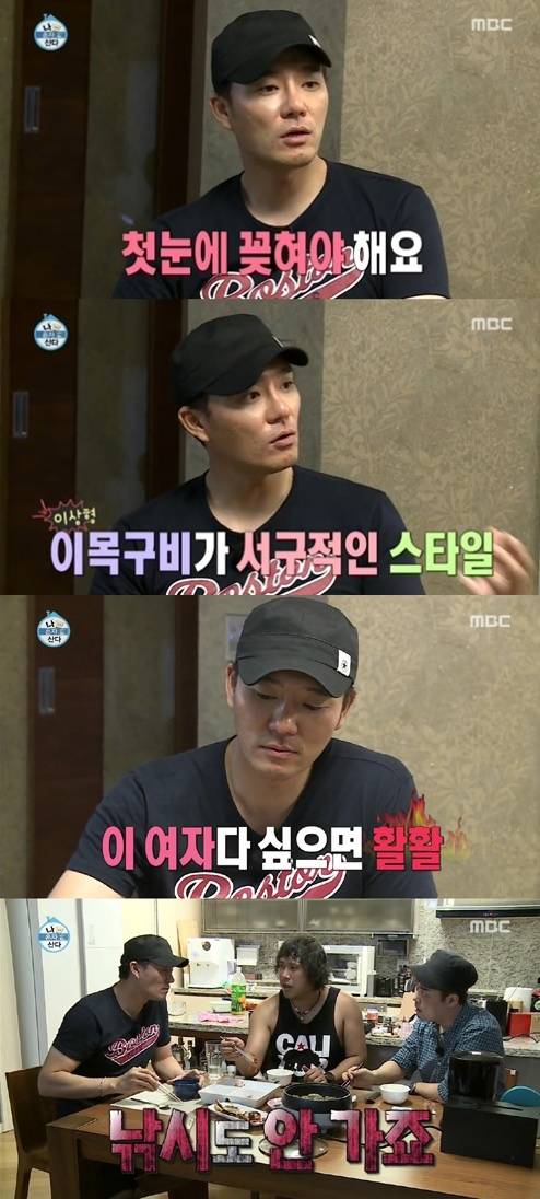 '나 혼자 산다' 이태곤이 이상형을 고백했다.지난 19일 방송된 MBC '나 혼자 산다'에서는 전현무, 육중완이 이태곤의 도움을 받아 체중 조절에 나서는 모습이 전파를 탔다.이날 운동을 마친 후 이태곤은 전현무와 육중완을 자신의 집으로 초대해 돌돔과 불고기 등 식사를 대접했다.전현무는 이태곤에게 "진짜 여자 소개시켜주고 싶다. 이상형이 어떻게 되냐?"고 질문했다. 이에 이태곤은 "한눈에 봤을 때 꽂히는 사람을 좋아한다"고 운을 뗐다.이어 "이목구비가 서구적인 고양이과를 좋아한다. 계속 만나면서 정드는 스타일이 아니라 이 여자다 싶으면 활활 타오르는 스타일이다"라며 "낚시도 안 간다. 당분간은.."이라고 덧붙여 웃음을 자아냈다.[나 혼자 산다 이태곤, 사진=MBC '나 혼자 산다' 방송 캡처]