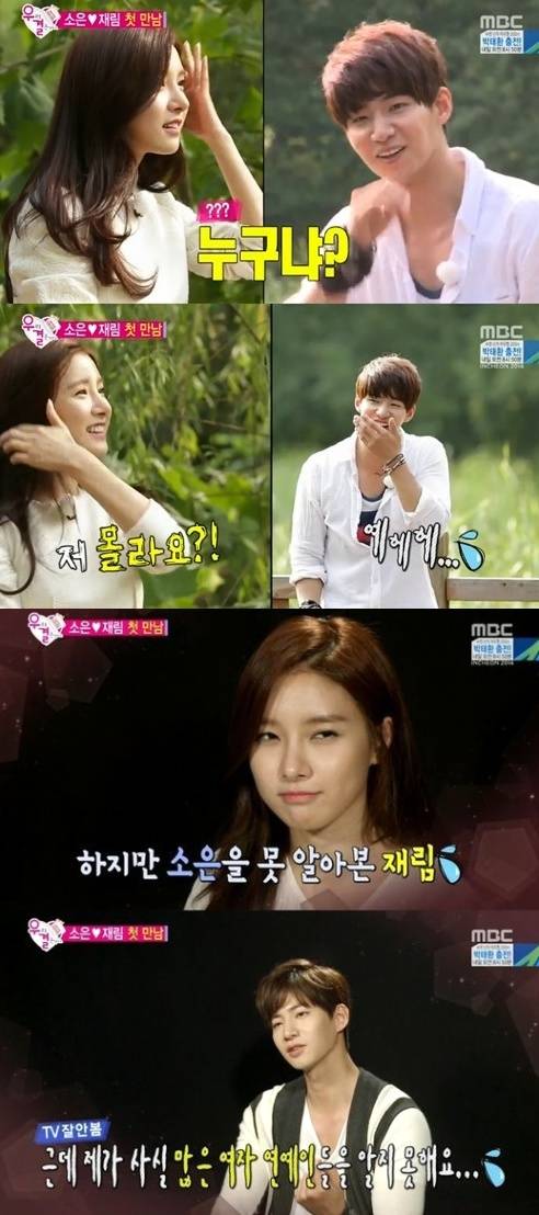'우결' 송재림이 가상아내 김소은을 첫 대면에서 못 알아봤다.지난 20일 방송된 MBC '우리 결혼했어요 시즌4'(이하 '우결')에서는 첫 만남을 가지는 송재림과 김소은의 모습이 그려졌다.이날 영화 '어바웃 타임' 속 두 주인공이 첫 만남을 가진 장소처럼 아무것도 보이지 않는 캄캄한 어둠속에서 상대를 모른 채 서로에 대해 유추하는 시간을 가졌다.블라인드 데이트를 끝내고 밖에서 만난 두 사람은 정식으로 인사를 나눴다. 그런데 김소은을 본 송재림은 "누구세요?"라며 알아보지 못해 김소은을 당황하게 만들었다.이후 김소은은 제작진과의 인터뷰에서 "어느 정도 예상했던거에 적중해서 그런지 반갑기도 하고 설레기 했다. 그래도 난 한 번에 알아봤는데.. 온 국민이 알아볼 때까지 소처럼 일하겠다"고 각오를 다졌다.송재림은 "알아 봤어야 하는 건데 내가 사실 많은 여자 연예인을 알지 못한다. 자료 조사가 부족했다"고 반성하는 모습을 보였다.['우결' 송재림 김소은, 사진=MBC '우리 결혼했어요' 방송 캡처]