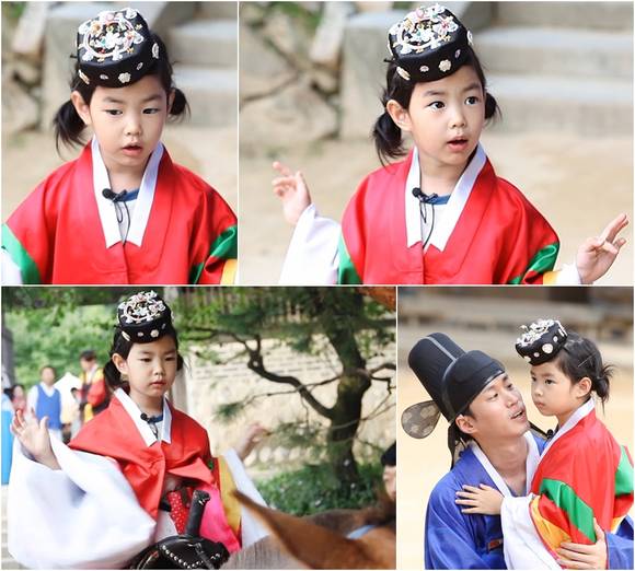 '슈퍼맨이 돌아왔다' 이하루가 인형 자태의 꼬마신부로 변신했다.21일 방송될 KBS 2TV '해피선데이-슈퍼맨이 돌아왔다'에서 타블로와 딸 이하루는 민속촌에 방문해 전통 혼례체험에 나섰다. 특히, 이날 하루는 아빠 타블로의 입이 떡 벌어질 만큼, 깜찍한 혼례복 자태를 선보인 것으로 알려져 이목을 집중시키고 있다.하얀 피부와 꼭 어울리는 빨간 활옷과 화사한 족두리를 두르고 나타난 하루. 앙증맞고도 단아한 '꼬마신부' 하루의 모습에 새신랑(?) 타블로는 입을 다물지 못했다. 주변을 화사하게 밝히는 '꼬마신부' 하루의 인형 자태에 푹 빠진 타블로와는 다르게 하루의 관심은 오로지 신랑을 태우기 위해 준비되어 있는 말에 집중됐다.하루는 말 옆에 나란히 놓인 신부용 가마는 안중에도 없이 말을 향해 "얘는 이름이 뭐에요?"라며 아기 새처럼 재잘거리더니, 이내 꽃 가마를 뒤로한 채 말을 선택해 양갓집 규수 같은 미모와는 반대의 말괄량이 포스로 웃음을 자아냈다.이에 타블로는 가마 꾼들을 향해 "어휴~ 말 탄 신부는 처음이시죠?"라며 머리를 떨구어 주변을 폭소케 했다는 후문이다. 과연 타블로의 입을 떡 벌어지게 만든 하루의 단아한 혼례복 자태와 타블로의 감탄을 탄식으로 바꾼 하루의 말괄량이 모습은 어떤 모습이었을지 관심이 한층 높아진다.한편, KBS2 '슈퍼맨이 돌아왔다' 45회는 인천 아시안게임으로 인해 21일 오후 4시 30분에 시작한다.['슈퍼맨' 이하루 꼬마신부 변신, 사진=KBS2 '슈퍼맨이 돌아왔다']
