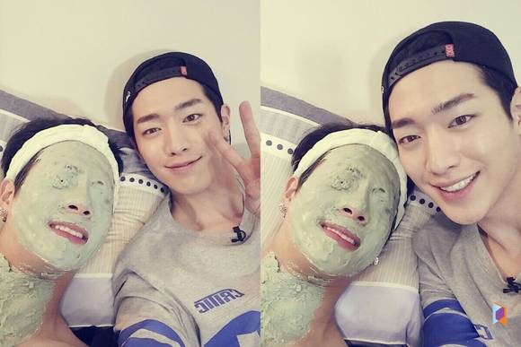 공개된 사진 속에는 얼굴에 잔뜩 팩을 올려 놓은 잭슨과 미소를 지으며 카메라를 바라보고 있는 서강준의 모습이 담겨 있다. 서강준이 눈과 목까지 꼼꼼하게(?) 발라준 팩을 한 채 흐믓한 미소를 짓고 있는 잭슨과 그 옆에서 브이를 그리고 있는 서강준의 개구진 모습이 웃음을 자아낸다.