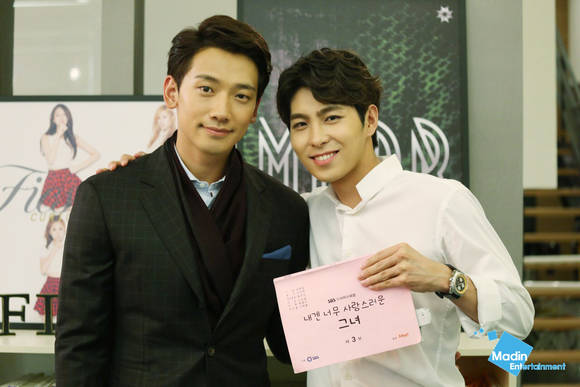 '내겐 너무 사랑스러운 그녀' 김광민이 17년 지기 친구인 정지훈과의 절친 인증샷을 공개했다.SBS 수목드라마 '내겐 너무 사랑스러운 그녀'(극본 노지설, 연출 박형기, 이하 '내그녀')에서 연예기획사 AnA의 대표 이현욱(정지훈)과 기획사의 팀장이자 현욱을 든든히 지지하는 김현수(김광민)로 호연을 펼치고 있는 두 사람의 다정한 투샷이 눈길을 사로잡는다.공개된 사진 속에는 김광민과 정지훈이 함께 출연 중인 '내그녀' 대본을 들고 카메라를 향해 미소를 짓고 있다. 극중 서로를 의지하는 대표와 팀장으로 출연하고 있는 정지훈과 김광민은 실제 안양예술고등학교 동창이자 17년 지기 절친한 친구다.두 사람은 함께 촬영을 하지 않는 날에도 각자 꼼꼼히 모니터링을 해주거나 서로에게 조언과 격려를 아끼지 않는 모습으로 훈훈한 외모만큼이나 끈끈한 우정을 과시하고 있다는 후문이다.'내그녀' 김광민 정지훈 친분 사진을 접한 네티즌들은 "눈이 호강하는 두 배우", "친구끼리는 닮는다더니 둘 다 잘생겼네요", "진정한 우정케미! 친구가 같이 활동하는 모습이 보기 좋다", "김광민은 '참 좋은 시절'에서 감초였는데.. 연기 기대할게요" 등의 다양한 반응을 보였다.한편, '내겐 너무 사랑스러운 그녀'는 대한민국 최고의 연예기획사 AnA를 배경으로 펼쳐지는 꿈 많은 드림 걸 세나(크리스탈)와 비밀 많은 개미남 현욱(정지훈)의 꿈과 사랑을 그린 드라마.['내겐 너무 사랑스러운 그녀' 김광민 정지훈, 사진=메이딘 엔터테인먼트]