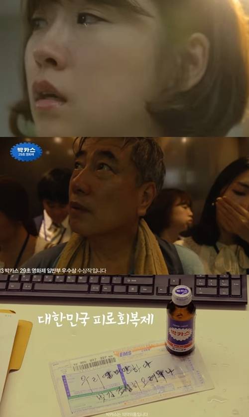 박카스 광고 '대한민국에서 불효자로 산다는 것' 편이 네티즌들의 마음을 뭉클하게 했다.최근 각종 온라인 커뮤니티 게시판에는 '가슴 뭉클한 박카스 광고'라는 제목으로 영상이 올라와 높은 조회수를 기록하고 있다.지난 6월부터 전파를 탄 박카스 광고는 비오는 날 출근하던 딸이 퀵 서비스 일을 하는 아버지와 엘레베이터 안에서 우연히 마주친다. 하지만 아버지는 자신의 초라색 행색과 땀 냄새에 차마 딸을 쳐다보지 못하고, 딸은 아버지를 창피해 하며 외면한다.하지만 회사 사무실 책상에 박카스와 함께 "우리 딸 미안하다. 빗길 조심히 오려무나"라고 쓴 빗물에 번진 메모가 놓여 있었고, 딸의 눈에는 눈물이 가득 고인다.박카스 광고를 접한 네티즌들은 "박카스 광고 완전 감동이야", "대한민국의 모든 아버지 감사합니다!", "박카스 광고 29초 만에 나를 울리네", "애잔한 부성애 가슴 찡해", "박카스 광고 아이디어 정말 좋다", "박카스 광고 공감 200%" 등의 반응을 보였다.[박카스 광고, 사진=유튜브 캡처]