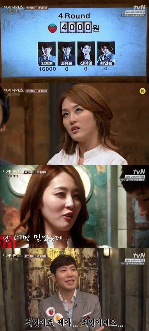 '더지니어스 3'' 신아영이 김경훈의 배신에 허탈한 표정을 감추지 못했다.