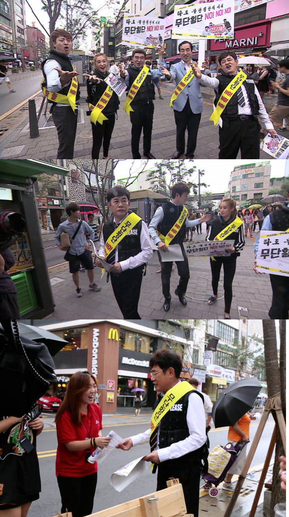 '도로 위의 양심' 이경규와 이덕화, 유상무, 보라는 무단횡단 심각성을 파악하기 위해 서울시 3개의 지역을 선정해 해당지역 구청장들과 함께 거리로 나섰다.