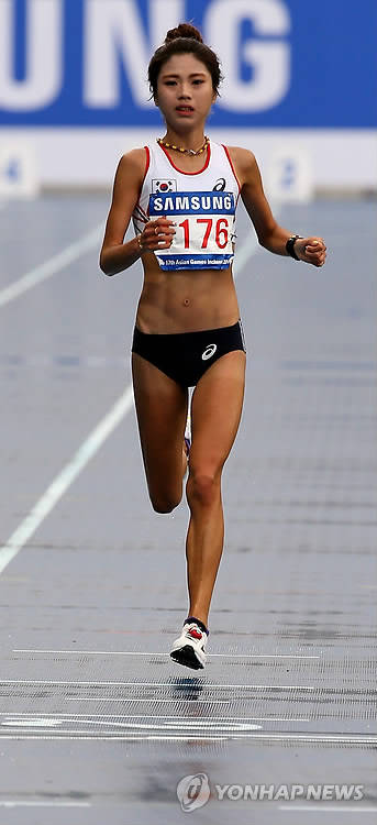 '투혼의 완주'로 네티즌들에게 감동을 선사한 최보라의 복근이 포착됐다.최보라(23, 경주시청)는 지난 2일 열린 2014 인천 아시안게임 여자 마라톤에서 2시간45분4초를 기록하며 12위로 레이스를 마쳤다.이날 최보라는 결승선을 통과하자마자 바로 쓰러졌고, 다시 일어나지 못했다. 결국 그녀는 들것에 실려 도핑 테스트장으로 옮겨졌다. 개인 통산 8번째로 투혼의 완주였다.특히, 최보라의 복근이 눈길을 끌었다. 공개된 사진 속 최보라는 군살 하나 없는 11자 복근과 구릿빛 탄탄한 몸매를 자랑했다.한편, 1991년 생인 최보라는 162cm에 41kg의 소유자로 2010년 전남 체육고등학교를 졸업하고 2011년 08월 제13회 대구세계육상선수권대회를 통해 국가대표가 됐다. 올해 열린 동아일보 서울국제마라톤 2위를 차지한 여자 마라톤 유망주이기도 하다.[최보라 복근, 사진=연합뉴스]
