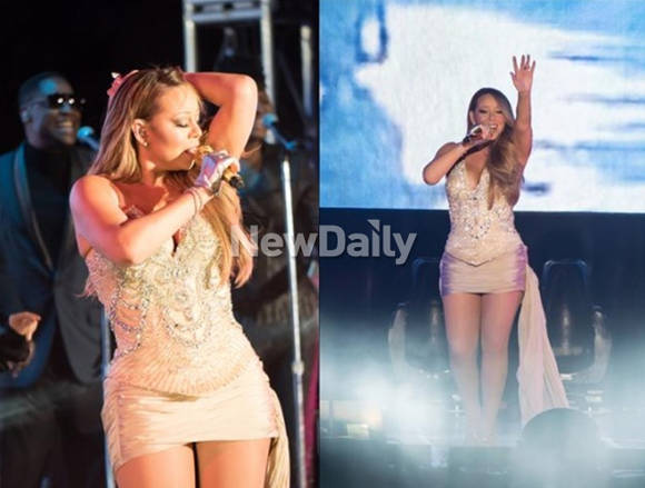 '팝디바' 머라이어 캐리(44)의 무성의한 내한 공연에 팬들이 화가 났다.머라이어 캐리(Mariah Carey)는 지난 8일 오후 서울 송파구 잠실 올림픽공원 88잔디마당에서 '롯데월드몰 어메이징 콘서트 머라이어 캐리 내한공연'을 펼쳤다.11년 만에 단독 콘서트를 연 머라이어 캐리는 예정보다 20여 분 늦은 8시 20분께 몸매가 드러나는 타이트한 드레스를 입고 무대에 등장했다.머라이어 캐리 특유의 돌고래 창법을 기대한 관객들은 예상 밖의 가창력과 무대 매너에 매우 실망스러워했다. 공연 초반 그녀는 목이 덜 풀렸는지 목소리가 잘 들리지 않았고, 고음에서는 가성으로 넘어가는 모습을 보였다.또, 일부 곡에서는 가사를 잊어 노래를 얼버무리고 코러스에 의지했으며, 파워풀한 가창력은 전혀 들리지 않아 관객들의 아쉬움을 샀다. 특히, 마지막 곡인 '올 아이 원트 포 크리스마스 이즈 유(All I Want for christmas is you)'를 부른 뒤 별다른 인사 없이 퇴장하자 일부 관객은 당황스러운 표정을 짓기도 했다.관객들이 앙코르를 외쳤음에도 머라이어캐리는 끝내 모습을 드러내지 않아 팬들에게 큰 실망감을 안겼다. 이에 공연을 접한 팬들은 "돈이 아깝다", "무성의한 공연에 환불 받고 싶을 정도" 등의 반응을 보이며 불만을 터뜨렸다.[내한 머라이어 캐리, 사진=연합뉴스]