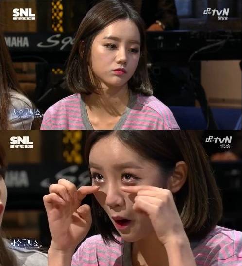 'SNL코리아' 혜리가 눈물을 보였다.지난 11일 방송된 tvN 'SNL 코리아 시즌5'에는 걸스데이가 호스트로 출연해 솔직한 입담과 깜찍한 발랄한 매력으로 눈길을 사로잡았다.이날 '자수구찌쇼'에서 헤리는 "내 동생이 대학 면접을 보러 가서 가장 존경하는 사람이 누구냐고 물어봤는데 나라고 대답했다고 들었다. 엄마가 얘기해줬는데 엄청난 감동이었다"고 털어놨다.혜리는 참았던 눈물을 흘리며 잠시 말을 잇지 못했다. 이어 "동생한테는 내가 멋져 보이나보다. 난 몰랐다"면서 "지금 제일 행복하다. 행복은 과거도, 미래도 생각 안하고 현재를 생각하면 되는 것 같다"고 전했다.[SNL코리아 혜리, 사진=tvN 'SNL 코리아' 방송 캡처]