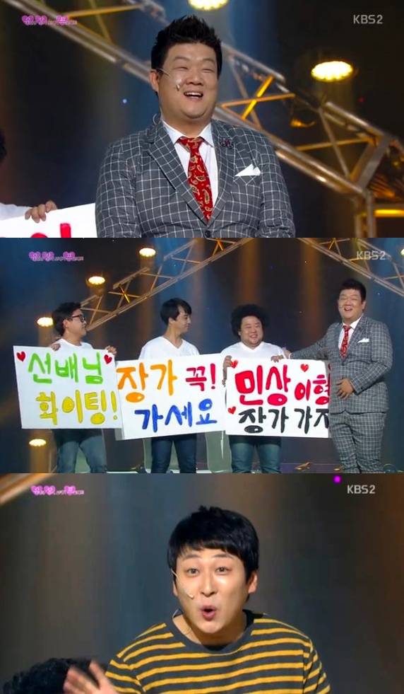 개그맨 노우진이 유민상이 후배 홍예슬에게 사심이 있다고 폭로했다.지난 12일 방송된 KBS 2TV '개그콘서트' 새 코너 '유민상 장가보내기 프로젝트'(유장프)에는 유민상, 노우진, 송영길, 홍현호, 최재원 등이 출연해 실생활 개그를 선보였다.이날 유민상은 "안생기는 개그맨 유민상이다. 영길이도 결혼했는데 유민상은 뭐하냐는 말이 많아서 이런 코너를 만들었다"며 "리얼로 하는 거다. 내가 진짜 여자를 만나거나 결혼 얘기가 오가면 이 코너는 끝난다"고 설명했다.이에 신인개그맨 홍현호 최재원은 "저희는 이 코너밖에 없는데.."라며 아쉬움을 드러냈다. 그러자 송영길은 "이 한심한 놈아. 이 코너가 끝나겠냐? 이 형이 장가 가겠냐? 이 코너는 우리 출연료 챙겨주려 하는 거야"라고 말해 웃음을 자아냈다.이후 유민상을 응원해주기 위해 등장한 노우진은 "인간 유민상을 자랑하려고 이 자리에 나왔다. 유민상은 바보스러울 정도로 한 여자만 바라보는 순정파다. 나이트클럽에서도 한 번 물면 놓지 않는다"고 밝혀 모두를 폭소케 했다.이어 노우진은 "최근에 문 여자는 신인 개그우먼 홍예슬이다"고 폭로해 유민상을 당황하게 만들었다.[유민상 홍예슬, 사진=KBS2 '개그콘서트' 방송 캡처]