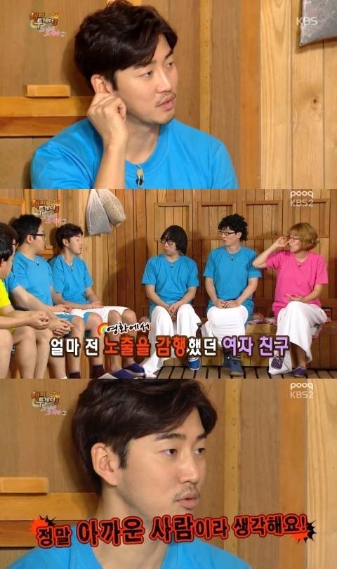 배우 윤계상이 연인 이하늬에 대한 무한애정을 과시했다.16일 방송된 KBS 2TV '해피투게더3'에는 '그남자, 그여자' 특집으로 배우 윤계상, 고준희, 이미도, 박범수 감독과 연예계 대표 뮤지션 부부 조정치 정인 부부가 출연해 솔직한 입담을 뽐냈다.이날 MC들은 얼마 전 19금 로맨틱 코미디 영화 '레드카펫'을 촬영한 윤계상에게 여자친구 이하늬의 터치가 없었느냐고 물었다.이에 윤계상은 "각자의 작품에 대해서는 터치하지 않는다. 쿨하다. 정말 좋은 사람이다"고 이하늬에 대한 깊은 신뢰를 드러냈다.이어 이하늬가 영화 '타짜2'에서 노출을 감행한 것에 대해 "정말 아까운 사람이라고 생각한다"며 "연기적으로 더 보여줘야 할 사람이다. 작품으로 더 보여줬으면 좋겠다"고 여자친구의 연기력을 높이 평가했다.['해피투게더' 윤계상 이하늬, 사진=KBS2 '해피투게더' 방송 캡처]