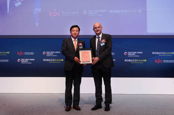 농심이 다우존스 지속가능경영지수(DJSI Korea) 평가에서 식료품 부문 최우수 기업으로 선정됐다. 농심의 이번 수상은 DJSI Korea지수가 국내 도입된 이래 6년 연속이며, 식품업계에서 유일하다.16일 오후 소공동 롯데호텔에서 열린 'DJSI 국제컨퍼런스 및 인증식'에선 농심을 비롯, 삼성전자, SK텔레콤, 롯데쇼핑 등이 DJSI 인증패를 받았다.농심 관계자는 "DJSI 평가에서 최우수기업으로 선정된다는 것은 그 산업을 대표해 월등한 경영성과와 건전한 재무구조 등을 세계적으로 인정받았다는 의미"라며 "앞으로도 내실있는 식품사업, 진정성있는 사회공헌활동, 친환경 정책 등 지속가능경영을 실현해 나가겠다"고 밝혔다.한편 DJSI는 세계적 금융정보 제공기관 S&P 다우존스 인덱스(S&P Dow Jones Indices)와 지속가능성 평가 전문기관인 RobecoSAM이 1999년 공동으로 개발한 지속가능경영지수로 기업의 지속가능성을 경제적, 환경적, 사회적 측면에서 평가∙분석하여 선별한 기업만을 편입하며, 지속가능경영 평가 및 투자에 대한 글로벌 표준이 되고 있다.