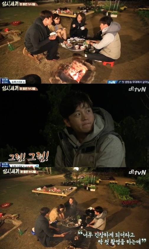 '삼시세끼' 이서진이 문채원과 불륜 연기를 한다고 털어놨다.지난 17일 첫 방송된 tvN '삼시세끼'에서는 강원도 자연의 축소판이라 할 수 있는 정선의 한 시골 마을에서 살아가기 위해 첫 걸음을 내딘 이서진, 2PM 택연의 고군분투기가 그려졌다.이날 이서진은 윤여정, 최화정, 택연과 대화를 하던 중 "이승기, 문채원 주연 영화에 특별 출연한다"며 "내가 너무 열심히 해서 사무실에서 놀란다"고 밝혔다.이어 이서진은 "문채원과 불륜을 저지르는 역할"이라고 덧붙였고, 이를 들은 윤여정은 "그래서 열심히 하는 것 아니니?"라고 말해 웃음을 자아냈다.한편, 이서진이 특별출연하는 '오늘의 연애'는 날씨만큼 미묘한 남녀 사이의 관계를 그리는 로맨스 영화로 '너는 내 운명', '그놈 녹소리' 등을 연출한 박진표 감독이 메가폰을 잡는다.['삼시세끼' 문채원 이서진, 사진=tvN '삼시세끼' 방송 캡처]