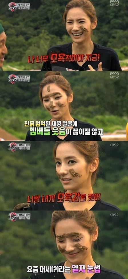 '로드킹' 한채영이 진흙 벌칙으로 얼굴이 망가지는 굴욕을 당했다.19일 오전 방송된 KBS 2TV 2부작 예능프로그램 '로드킹'에서 멤버들은 2인 1조로 드라이버, 코드라이버를 맡아 오프로드 카 대결을 펼쳤다.오프로드 리얼버라이어티 '로드킹'은 험악한 오프로드를 달리며 모험을 즐기는 새로운 예능 프로그램. 배우 신현준, 레이서 출신인 연정훈, 장우혁, 뮤지, 주종혁(라이언), 제국의 아이들 광희와 동준, 포미닛 소현 등이 출연했다.이날 드라이버 동준과 한 팀이 된 한채영은 네 팀 중 최하위에 머물러 얼굴에 진흙을 묻히는 벌칙을 받게 됐다. 한채영은 다른 멤버들에게 "귀엽게 해달라"고 부탁했다.하지만 신현준은 진흙으로 한채영의 얼굴을 우스꽝스러운 모양으로 만들었고, 이에 한채영은 "나 너무 모욕적이야"라고 정색해 웃음을 자아냈다.[로드킹 한채영, 사진=KBS2 '로드킹' 방송 캡처]