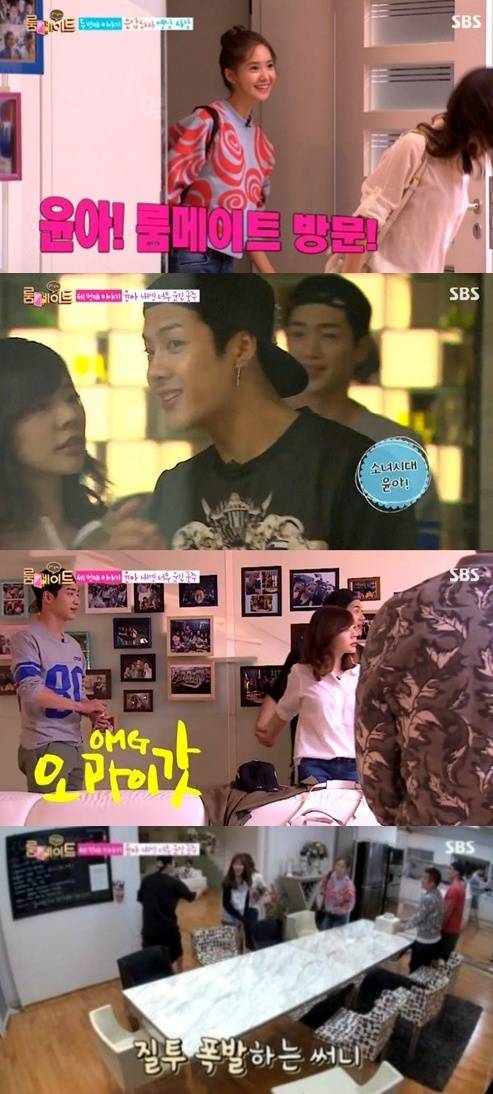 소녀시대 윤아의 '룸메이트' 깜짝 방문에 잭슨이 격하게 환영했다.윤아는 19일 방송된 SBS '일요일이 좋다-룸메이트 시즌2'(이하 룸메이트')에서 써니의 집들이 초대로 성북동 셰어하우스를 방문했다.이날 윤아는 써니와 함께 숙소를 찾았고, 윤아의 등장에 '룸메이트' 남자 멤버들은 환호성을 지르며 크게 반겼다.방에서 나온 잭슨은 윤아를 보자 "오 마이 갓"이라고 외치며 환하게 웃었다. 이를 본 써니는 "너 누나 섭섭하게 할래?"라며 질투를 드러내 웃음을 자아냈다.또한, 잭슨이 윤아에게 "누나 키 진짜 커요"라고 말하자 상대적으로 작은 써니는 발끈하며 잭슨을 나무랐다. 하지만 이후 잭슨은 허영지에게 "태연이냐?"라고 질문해 윤아에게 굴욕을 안겼다.[룸메이트 윤아, 사진=SBS '룸메이트' 방송 캡처]