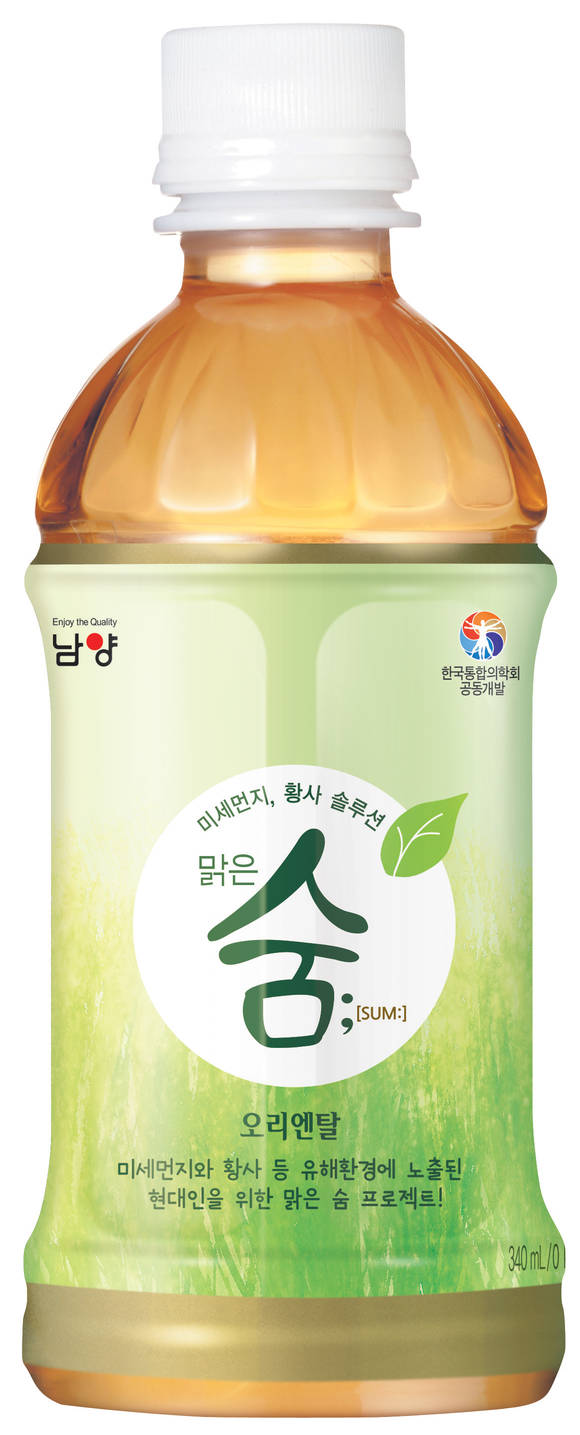 남양유업은 호흡기에 좋다고 알려진 원료들로 만든 차음료 '맑은 숨 오리엔탈'을 출시했다.신제품 '맑은숨 오리엔탈'은 최근 잦아진 미세먼지와 황사 등에 무방비로 노출된 현대인을 위해 한국통합의학회와 공동으로 개발한 제품이다.이 제품은 전통적으로 호흡기에 좋다고 알려진 도라지, 더덕, 배, 맥문동, 수세미 등 5가지 전통소재를 엄선하였으며, 솔싹추출물을 함께 담아 원료 특유의 쓴 맛은 줄이고 상쾌한 맛을 살려낸 것이 특징이다.또한 각각의 원료를 80℃ 저온에서 장시간 개별 추출하여 혼합한 후, 저온감압 농축하는 차별화된 제조기술을 적용하여 유익한 영양성분의 파괴를 최소화하였다.남양유업은 최근 잦아진 미세먼지와 황사로 인해 호흡기 관련 질환을 호소하는 인구가 늘고 있고, 특히 중국발 초미세먼지가 야외활동이 잦은 현대인들에게 큰 위협이 되고 있어 이 제품을 출시했다..남양유업 이원구 대표는 "이 제품은 수분섭취를 통한 이뇨작용으로 미세먼지와 함께 체내에 흡수된 노폐물의 배출을 유도해주는 만큼 야외활동이 많은 사람이나 흡연자 등의 호흡기 건강에 도움이 될 것"이라고 말했다.‘맑은숨 오리엔탈’의 용량은 340ml와 500ml 2종이며, 시중 판매가는 1,200원(340ml)이다.