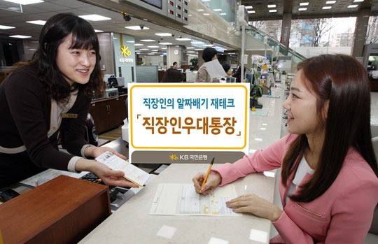 국민은행 '직장인 우대 종합통장'이 인기를 끌고 있다.직장인 우대 종합통장은 급여 이체를 하는 젊은 직장인에게 실질적인 수수료 면제 혜택과 금리 우대를 주는 맞춤형 상품이다.직장인 우대 종합통장은 1인 1계좌만 가입 가능하다. 기존에 보통예금과 저축예금 통장을 갖고 있는 고객도 직장인 우대 종합통장으로 전환할 수 있다. 다만 개인 사업자는 가입할 수 없다.직장인 우대 종합통장 소지자 중, 해당 통장으로 급여를 이체 받고, 3개월 통장 평균 잔액이 100만원 이상이며, 3개월간 KB카드 이용 실적이 100만원 이상인 고객은 자동화기기 이용 수수료와 인터넷뱅킹, 모바일뱅킹, 폰뱅킹 이용 수수료 등이 무제한 면제된다.KB카드의 결제 실적이 있거나 공과금 자동이체가 있는 고객에게도 월 10회 수수료 면제 혜택이 제공된다.해당 상품에 가입한 고객이 국민은행 타 상품을 가입하면 금리 우대 혜택도 제공된다.인터넷을 통한 상품(주택청약 예·부금, 20대자립주택청약 예·부금, KB우대적금, KB상호부금, 국민수퍼정기예금) 가입 시 연 0.3% 포인트의 금리 우대를 제공한다. 주택청약 예·부금의 경우 창구 가입 시에도 연 0.2% 포인트의 금리 우대를 제공한다.한편, 젊은 고객을 겨냥한 기존 상품으로 'KB Star*t' 통장이 있는데, 이는 젊은 고객 상당수의 통장 잔고가 적다는 점을 착안, 월평균 잔액 100만원 '이하'일 경우 2.5%의 금리를 제공한다는 점에서 이 상품과 차이를 보인다.
