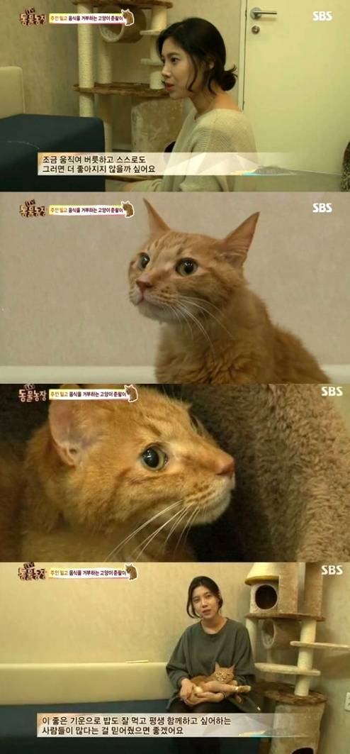 배다해의 따뜻한 마음씨가 기적을 만들었다.2일 오전 방송된 SBS 'TV 동물농장'에서는 주인에게 버림받은 뒤 음식을 거부하는 고양이 준팔이의 사연이 소개됐다.준팔이는 지난 7월 서울 강남의 한 동물병원에 버려졌다. 당시 '좋은 곳으로 보내달라'며 이름이 적힌 쪽지와 함께 발견됐고, 이후 서울의 한 보호소로 보내졌다.주인에게 버림받은 준팔이는 수개월 동안 음식을 제대로 먹지 않아 부쩍 말라 있었다. 전문가에 따르면 상실감과 불안, 스트레스로 인한 우울 증세가 거식 증세로 이어졌다며 새로운 주인을 찾아줘야 한다고 조언했다.이러한 사연을 접한 배다해는 준팔이를 맡겠다고 자청했다. 배다해는 처음 준팔이를 돌보는 게 쉽지 않았다. 하지만 준팔이에게 각별한 애정을 쏟으며 조금씩 가까워졌고, 결국 준팔이는 배다해에게 마음의 문을 열었다.준팔이는 조금씩 생기를 되찾아가더니 스스로 음식을 먹게 됐다. 이에 배다해는 "진짜 말도 안 된다. 정말 행복하다"고 뿌듯한 미소를 지었다.이어 배다해는 "이 좋은 기운으로 밥도 잘 먹고, 평생 함께하고 싶은 사람들이 많다는 걸 알아줬으면 좋겠다"라고 말해 감동을 자아냈다. 이후 준팔이는 배다해와 시간을 보내며 예전의 밝은 모습으로 돌아와 시청자들을 흐뭇하게 만들었다.['동물농장' 배다해 준팔이, 사진=SBS 'TV 동물농장' 캡처]