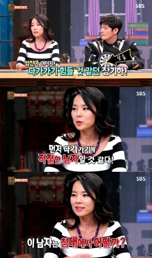 칼럼니스트 곽정은의 19금 발언이 논란에 휩싸였다.곽정은은 지난 4일 방송된 SBS '매직아이'에 출연해 장기하에 대해 "처음엔 다가가기 힘들 것 같은 이미지였다. 하지만 라디오를 하다가 몇 번 만나보니 느낌이 왔다. 먼저 다가가기 적절한 남자인 것 같다"고 밝혔다.이어 "이렇게 보면 가만히 앉아 있을 때 말 수가 적어 보이는데, 노래만 시작하면 몸에서 나오는 폭발적인 에너지가 있다. '이 남자는 침대에서 어떨까'라는 상상을 하게 된다"고 솔직하게 말해 좌중을 놀라게 했다.또한, 곽정은은 "성적인 얘기를 자유롭게 할 수 있으면 다른 얘기도 자유롭게 할 수 있는 것 같다"고 소신있는 발언으로 눈길을 끌었다.하지만 곽정은의 19금 발언을 접한 네티즌들은 "아무리 심야 예능이지만 너무 지나쳤다", "장기하 입장에서 보면 성희롱 아니냐", "만약 곽정은 발언을 남자가 했다면?", "내가 장기하라면 기분 나빴을 것", "과거 이효리도 그렇고 여자들에게만 성적인 발언이 자유로운 듯" 등의 불쾌한 반응을 보였다.[곽정은 장기하 발언 논란, 사진=SBS '매직아이' 캡처]