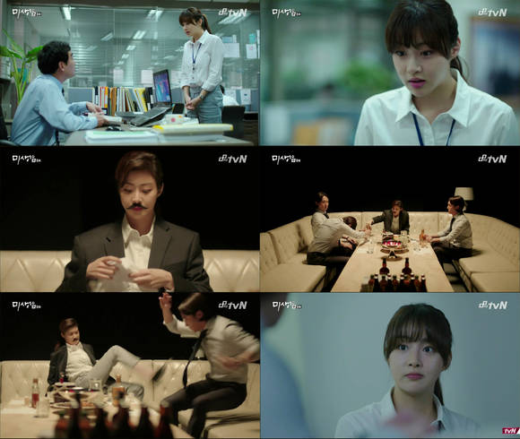 또한, 콧수염을 붙이고 남장을 한 채 영업3팀이 접대 해야 하는 막강한 상대를 흉내 내며 술자리 대처 방법을 선보이는 영이의 모습은 보는 이의 감탄을 자아냈다. 물수건으로 입을 닦는 척 하며 술을 뱉는 시늉을 하던 석율의 물수건에서 물이 떨어지자 영이는 비웃음을 날리며 능수능란하게 술자리 대처법을 설명해 모두를 놀라게 했다.