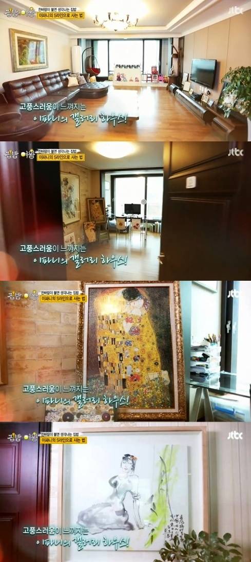 고풍스러움이 느껴지는 이파니 집이 공개됐다.지난 16일 방송된 JTBC '집밥의 여왕'에는 '무한변신녀' 4인방 특집으로 비키, 배다해, 채자연, 이파니가 출연해 집밥 대결을 펼쳤다.이날 이파니는 자신만의 집밥을 대접하기 위해 출연자들을 초대했다. 이파니 집은 입구부터 1억원에 호가하는 그림이 걸려있었으며, 마치 갤러리를 연상케 했다.이파니는 집안을 가득 채운 그림에 대해 "어릴 적 화가를 꿈꿔서 취미로 그림을 사 모았다"고 밝혔다. 이에 비키, 배다해, 채자연은 "너무 멋있다", "의외다" 등의 반응을 보이며 입을 감탄을 금치 못했다.이파니 집 공개에 네티즌들은 "이파니 집 공개 완전 럭셔리해", "이파니 의외의 취미네", "이파니 집 공개 나도 이런 데서 살고 싶어", "이파니 집이야 갤러리야?", "이파니 집 공개 정말 멋지다" 등의 다양한 반응을 보였다.[이파니 집 공개, 사진=JTBC '집밥의 여왕' 방송 캡처]