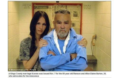 18일(이하 현지시간) 미국 언론사 AP통신은 "캘리포니아주 교도소에 복역 중인 찰스 맨슨과 54세 연하의 여성이 지난 7일 킹스 카운티로부터 결혼증명서를 발급받았다"고 보도했다.