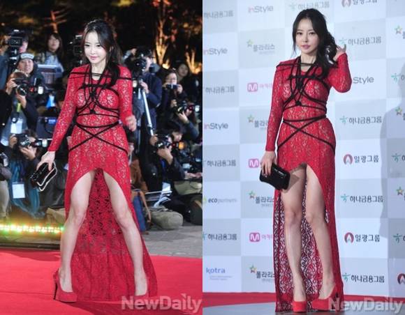 한세아의 파격적인 밧줄 드레스가 화제다.한세아는 21일 오후 6시 서울 여의도 KBS홀에서 열린 제51회 대종상영화제에서 강렬한 레드 컬러의 시스루 드레스를 입고 등장했다.이날 한세아는 볼륨감을 강조한 앞트임 드레스에 마치 검은색 밧줄로 꽁꽁 묶은 것처럼 보이는 파격 패션으로 이목을 사로잡았다. 특히, 하의 속옷까지 비치는 과감한 노출로 놀라움을 자아냈다.한세아는 키 162cm, 몸무게 42kg의 늘씬한 몸매를 자랑하며, 지난달 30일 개봉한 영화 '정사'에 출연해 수위 높은 베드신 연기를 선보였다.한세아 드레스를 접한 네티즌들은 "한세아 밧줄드레스 민망하다", "너무 애매한 드레스야", "한세아 밧줄드레스 충격적인 의상", "대놓고 노출 아슬아슬해", "한세아 밧줄드레스 작정하고 왔네" 등의 반응을 보였다.[한세아 드레스, 사진=뉴데일리 DB]
