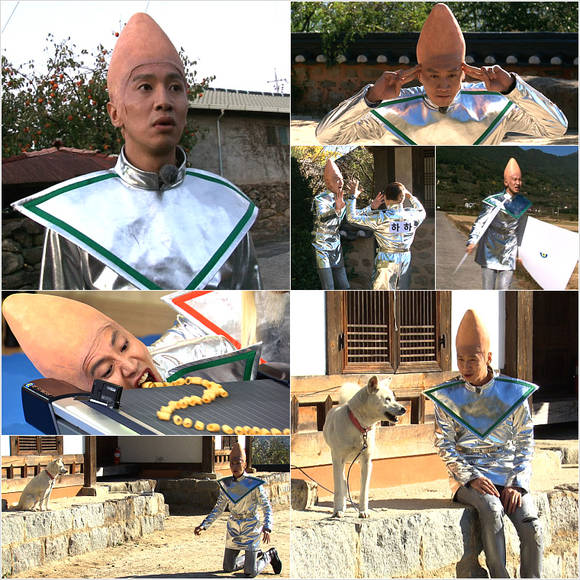 특히, 평소에도 큰 키를 자랑하던 이광수는 뾰족한 콘헤드 착용으로 2m를 넘는 어마어마한 기럭지를 뽐냈다. '런닝맨' 다른 멤버들과는 차원이 다른 큰 키가 '진짜 외계인'처럼 느끼게 할 만큼 강렬했던 터. 반짝반짝 광택 소재의 은색 의상을 입은 이광수는 역시나 반짝이는 민머리로 종횡무진 촬영장을 누비고 다니며 배경이 된 경남 하동을 환히 밝혔다는 후문이다.