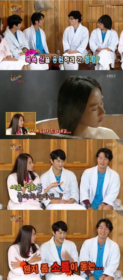 배우 조윤희가 자신의 목욕신 촬영 당시 이성재가 지켜봤다고 폭로했다.지난 27일 방송된 KBS 2TV '해피투게더3'에는 수목드라마 '왕의 얼굴' 주인공 이성재, 서인국, 조윤희, 신성록, 김규리가 출연해 솔직한 입담을 선보였다.이날 조윤희는 "내가 목욕신을 찍는 날이었다. 아무래도 어깨도 드러내고 하얀 속옷 같은 걸 입는 상태였는데 이성재가 갑자기 현장에 나타났다"고 말문을 열었다.이어 "이성재가 쉬어야 하는 시간이었는데 굳이 피곤한 몸을 이끌고 오셨다. 잠깐 보실 줄 알았는데 촬영이 끝날 때까지 현장에 있었다"고 밝혀 이성재를 당황케 했다.이에 이성재는 "기대가 된 것은 사실이다. 근데 촬영할 때는 차에 있었다. 끝날 때쯤 갔더니 마지막 목욕신을 촬영하고 있었다"고 해명했다.하지만 조윤희는 "그럴 리 없다. 촬영이 끝나면 FD가 알려준다"며 "그 쯤에 우연히 토크쇼를 봤는데 이성재 별명이 에로 성재였다. 그걸 듣고 나니 왠지 좀 소름이 돋았다"고 털어놔 폭소를 자아냈다.['해피투게더' 조윤희 이성재 폭로, 사진=KBS2 '해피투게더' 방송 캡처]