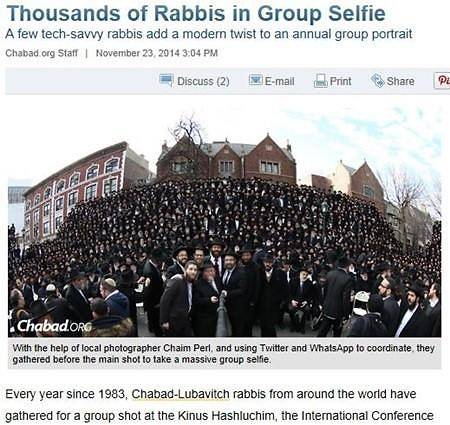 2000명 셀카 사진을 촬영한 랍비 레비 슬로님은 랍비 커뮤니티에 이 사진을 게재했다.