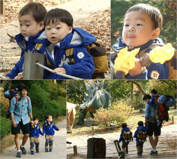 자타공인 '공룡홀릭' 대한 민국 만세가 드디어 진짜 공룡과 조우했다.11월 30일 방송될 KBS 2TV '해피선데이-슈퍼맨이 돌아왔다'에서 송일국은 유독 공룡을 좋아하는 '삼둥이' 대한-민국-만세를 위해 공룡 모형이 전시되어 있는 공룡의 숲으로 나들이에 나선다.삼둥이는 "우와! 머시따!"의 탄성과 함께 공룡의 숲에 입성했다. 생기발랄 삼둥이는 입성과 동시에 공룡의 숲을 점령했다. 발군의 친화력을 바탕으로 단숨에 공룡들의 친구가 된 것.삼둥이는 고개를 끄덕끄덕, 꼬리를 까딱까딱 움직이는 공룡을 보고 "공룡 안뇽~ 공룡이가 인사해요!" 등 오손도손 대화까지 주고 받으며 공룡과 베스트 프렌드로 거듭나 웃음을 자아냈다.거대한 사이즈의 실사판 공룡 앞에서도 여전히 신난 삼둥이. 그러나 얼마 지나지 않아 반전이 찾아왔다. 삼둥이가 동시에 폭풍눈물을 터뜨린 것.삼둥이는 공룡과의 즐거웠던 한 때는 까맣게 잊은 채 "공룡 저리갓!"을 연발하며 손을 휘휘 저으며 삼단합체 했고, 예기치 못한 삼둥이의 폭풍 눈물에 송일국은 당혹스러움을 감추지 못했다는 후문이다.과연, 공룡과 만난 대한-민국-만세에게 무슨 일이 생겼을지 관심을 높이고 있는 가운데 KBS2 '슈퍼맨이 돌아왔다' 54회는 30일 오후 4시 50분에 방송된다.['슈퍼맨' 송일국 삼둥이, 사진=KBS 2TV '해피선데이-슈퍼맨이 돌아왔다']