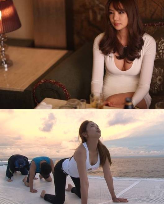 이는 이태임이 정글의 생존지로 이동하던 중 태평양 바다 위에서 자신의 몸매 비결인 요가 자세를 김병만과 류담에게 가르쳐주는 모습이다.