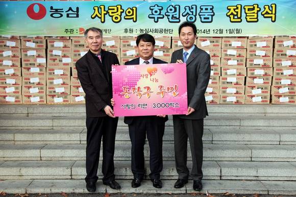 농심이 지난 1일 서울 동작복지재단과 '사랑의 라면 전달식'을 갖고 신라면 3천 박스를 기부했다.이번에 전달된 사랑의 신라면은 농심 임직원들이 자발적으로 참여하는 사회공헌활동 목적 재원인 '해피펀드'를 통해 마련된 것으로 이 라면은 지역 내 사회복지시설, 독거노인, 한 부모 가정 등에 전달될 예정이다.농심 '해피펀드'는 2007년 5월부터 전 임직원을 대상으로 자발적으로 신청을 받아 조성된 기금으로서 매월 자신이 희망한 금액이 월급에서 자동이체되는 방식으로 모금된다. 지금까지 모금된 해피펀드 기금은 총 8억여 원에 이르며, 이 중 현재까지 약 7억원이 사회복지시설 등 소외계층과 기타 라면지원 사업에 사용됐다.농심 관계자는 "이웃과 나누고 행복을 추구하는 농심철학을 바탕으로 지역 공동의 행복을 추구하기 위한 노력을 지속 펼쳐 나가겠다"고 밝혔다.