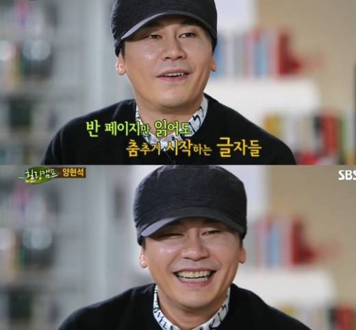 이날 방송에서 양현석은 "태어나서 책을 한 권도 읽어본 적이 없다"며 "읽기 시작하면 글자들이 춤을 춘다"고 밝혔다.