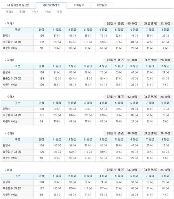 역사상 수학과 영어 난이도 조절을 실패했다는 평가가 잇따르고 있는 가운데 수능 등급컷이 공개됐다.