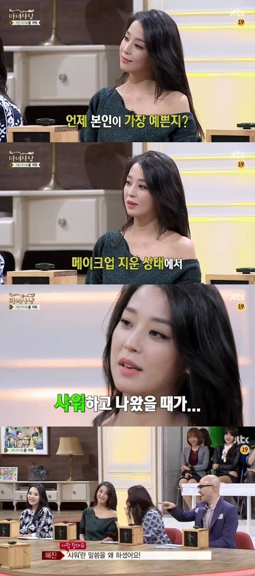 한고은이 샤워 후 가장 예쁜 것 같다고 말하자 '마녀사냥' 남자 MC들이 부끄러움을 감추지 못했다.배우 한고은은 지난 5일 방송된 JTBC '마녀사냥'에 게스트로 출연해 과거 연애담까지 들려주며 솔직한 입담과 소탈한 매력을 뽐냈다.이날 MC 성시경은 한고은에게 "예쁘다는 말을 들으면 기분이 어떨지 궁금하다. 라디오를 진행할 때 '언제 예뻐보이냐'는 질문을 하곤 했다"고 밝혔다.그러자 한고은은 "일 끝나고 화장 지우고 샤워하고 나왔을 때가 제일 볼만한 것 같다"고 답했다.한고은의 허지웅은 부끄러워했고, 성시경은 얼굴에 미소가 가득했다. 이를 본 모델 한혜진은 한고은을 향해 "샤워란 말씀을 왜 하셨어요"라고 말해 웃음을 자아냈다.[마녀사냥 한고은, 사진=JTBC '마녀사냥' 방송 캡처]