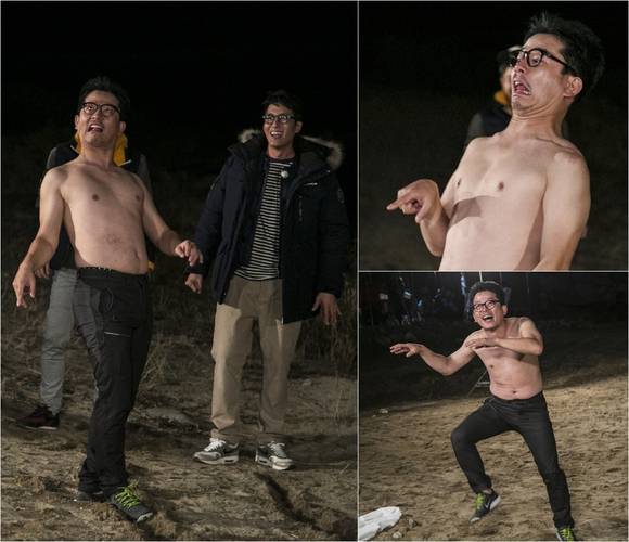 이와 함께 김준호는 깜깜한 밤에 야외에서 상의탈의를 하고 있어 눈길을 사로잡는다. 뒤에서 좀비로 변신한 김준호를 보며 웃고 있는 김주혁이 두툼한 점퍼를 입고 있는 것으로 보아 추위가 가늠이 되는 가운데, 그가 왜 상의탈의를 하게 된 이유에 관심이 모아진다.