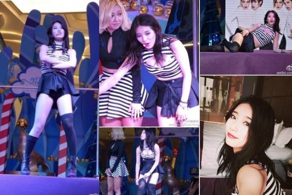 걸그룹 미쓰에이 수지의 파격 노출 의상이 화제다.최근 한 온라인 커뮤니티에서 '집 나가니 달라지는 그녀'라는 제목으로 수지의 사진이 여러 장 올라왔다.공개된 사진은 지난 7일 중국의 한 행사장에서 공연을 펼치고 있는 수지의 모습이 담겨 있다. 이는 행사에 참석한 현지 팬들에 의해 찍힌 것.사진 속 수지는 가슴골을 강조한 줄무늬 상의와 엉덩이만 간신히 가린 미니스커트를 입고 섹시한 매력을 뽐내고 있다. 특히,'국민 첫사랑' 아이콘인 수지의 청순한 이미지와 180도 다른 모습이 놀라움을 자아낸다.한편, 수지는 7일 방송된 MBC '2014 MBC 코리안 뮤직 웨이브 인 베이징' 공연 이후 같은 의상을 입고 자신의 인스타그램에 "정말 고마워요"라는 글과 함께 한 장의 사진을 게재해 눈길을 끌었다.[수지 중국 의상, 사진=온라인 커뮤니티/ 수지 인스타그램]