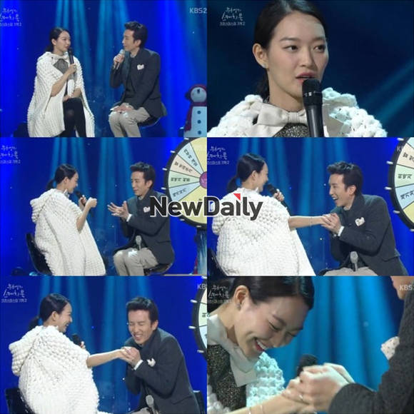 유희열 신민아 쌀보리가 남자들의 부러움을 자아냈다.지난 19일 방송된 KBS 2TV '유희열의 스케치북' 성탄특집에서는 배우 신민아를 비롯해 가수 남진, 윤상, 바비킴, 김범수, 성시경, 거미, 다이나믹듀오, 박정현, 씨스타, 2AM 등이 출연해 다채로운 무대를 선보였다.이날 깜짝 등장한 신민아는 텅 빈 객석을 향해 "관객이 하나도 없네요"라고 말했고, 유희열은 "뭔가 우리 사이를 방해받고 싶지 않았다. 나만 보려고"라며 음흉한 눈빛을 보냈다.유희열의 눈빛에 신민아가 어쩔 줄 몰라 하자 유희열은 "많인 부담스러우신가보다"라고 물었다. 이에 "부담스러워요"라고 솔직하게 답해 폭소를 안겼다.또한, 유희열은 신만아에게 쌀보리 게임을 제안해 눈길을 끌었다. 특히, 유희열은 쌀보리 게임을 하면서 신민아의 손을 오래 잡으며 사심을 채워 웃음을 자아냈다.[유희열 신민아 쌀보리, 사진=KBS2 '유희열의 스케치북' 방송 캡처]