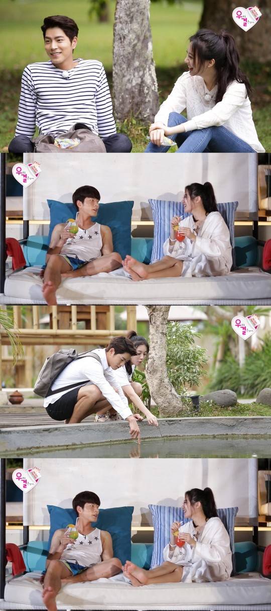 '우결' 홍종현 유라 커플의 캠퍼스커플 같은 모습이 포착됐다.20일 방송될 MBC '우리 결혼했어요 시즌4'(이하 '우결')에서는 홍종현 유라 부부가 드넓은 잔디밭에 앉아 알콩달콩 장난치며 발리에서의 여유를 만끽하는 모습이 그려진다.발리 현지 음식점에서 유라는 학창시절 뷔페에서 7~8접시는 기본으로 먹었다는 고백하고, 종현은 유라의 인생 최고 몸무게 시절을 검색하려고 한다. 이를 말리려는 유라와 갖은 핑계로 검색을 하려는 종현의 티격태격에 지켜보던 스튜디오 패널들은 "귀여워"를 연발했다.숙소로 돌아온 후, 두 사람은 로맨틱한 야간 수영에 한껏 들떴고, 본격적인 수영에 앞서 홍종현은 수영장 벽에 붙어있는 선반에서 턱걸이를 선보였다. 유라가 몇 개 할 수 있는지 해보라고 하자 홍종현은 자신만만하게 많이 할 수 있다며 상남자의 매력을 뽐냈다.MBC '우리 결혼했어요'는 20일 오후 방송된다.['우결' 홍종현 유라, 사진=MBC '우리결혼했어요']