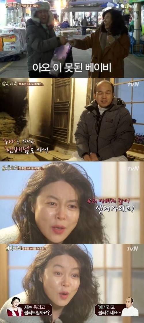 최화정이 김광규를 부르는 애칭을 공개됐다.지난 29일 방송된 tvN '삼시세끼' 마지막회에는 이서진, 옥택연을 비롯해 게스트 윤여정, 최화정 김광규, 이승기가 모여 옥순봉 연말피트를 열었다.이날 최화정은 자신을 반갑게 맞는 김광규를 "베이비"라고 불러 웃음을 자아냈다. 하지만 김광규는 최화정을 향해 선배님이 아닌 '최화정 선생님'이라며 극존칭을 썼다.김광규는 "어릴 때부터 봤던 분이라 누나라고 부르기도, 선배님이라고 부르기도 뭐했다. 건방져 보여서 선생님이라고 한다"고 밝혔다.최화정은 "김광규가 생긴 것만 보면 아버지 같이 생겼는데 나를 선생님이라고 부르더라. 나보고 무슨 호칭을 원하냐고 했더니 '애기'라고 불러달라고 했다"며 김광규를 베이비라고 칭하기 시작한 이유를 설명했다.[최화정 김광규, 사진=tvN '삼시세끼' 방송 캡처]