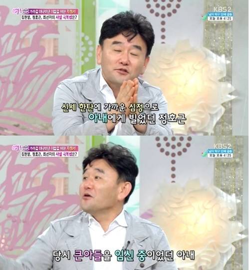 배우 정호근의 신내림 소식이 전해진 가운데 그의 과거발언이 화제다.정호근은 지난 9월 30일 방송된 KBS 2TV '여유만만'에서 미숙아로 태어난 딸이 동맥 고혈압 진단을 받고 세 살에 세상을 떠났다고 고백하며 아내의 자살 기도를 털어놨다.이날 정호근은 "딸 아이가 사망하고 나서 정신적으로 너무 힘들었다"며 "부부싸움 후 어느날 아내가 편지에 '건강한 딸 못낳아줘서 미안하다'는 편지 한 장을 남기고 사라졌다"고 밝혔다.이어 "정말 아내가 잘못 될 것 같단 생각이 들었다. 근데 왠지 딸 아이를 뭍어둔 곳에 있을 것 같아서 그곳으로 갔다"며 "도착해 보니 아내가 줄까지 준비해서 죽으려고 하고 있더라. 그 순간 아내에게 달려가 무릎꿇고 손이 발이 되도록 빌었다"고 당시를 회상했다.한편, 정호근은 주부생활 스타일러 2015년 1월호 인터뷰를 통해 "지난 9월 한 달여 동안 무병을 심하게 앓은 뒤 신내림을 받고 무속인이 됐다"며 "11월 14일, 음력 윤달 9월 22일에 내림을 받았다"고 알렸다.[배우 정호근 신내림, 사진=KBS2 '여유만만' 방송 캡처]