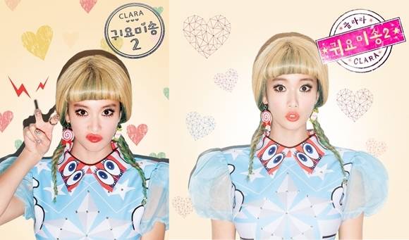 클라라가 '귀요미송'을 공개해 뜨거운 관심을 받고 있다.클라라가 원조 '귀요미송' 작곡 및 프로듀서 단디가 만든 '귀요미송2'로 22일 정오 디지털 싱글앨범을 발표했다.제작사 스페이스브레인스에 따르면 '귀요미송2'의 음원과 뮤직비디오에는 큐티, 발랄, 엉뚱, 엽기 콘셉트가 반영됐다. 이전에 볼 수 없었던 클라라의 엉뚱하고 발랄한 보이스와 연기를 음원과 뮤직비디오를 통해 확인할 수 있다.클라라 '귀요미송2'은 '귀요미송' 보다 한층 빨라진 박자, 귀여우면서도 톡톡 튀는 클라라 목소리를 꼽을 수 있다. 음악이 시작되면 우리 귀에 익숙한 '일 더하기 일은 귀요미' 가사와 신나는 비트가 청각을 자극한다. '귀요미송2'를 부르는 클라라의 목소리는 한 번 들으면 쉽게 빠져나오지 못하는 묘한 중독성을 갖고 있다.특히, 이번 뮤직비디오 속에는 미국 마블 코믹스 원작자인 스탠 리가 특별 출연한다. 스탠 리는 클라라 '귀요미송2' 뮤직비디오속에서 귀요미 학교 교장 선생님 역으로 카메오 출연했다.한편, '귀요미송'을 공개한 클라라는 오는 25일 Mnet '엠카운트다운'에 출연한다.[클라라 귀요미송, 사진=스페이스브레인스]
