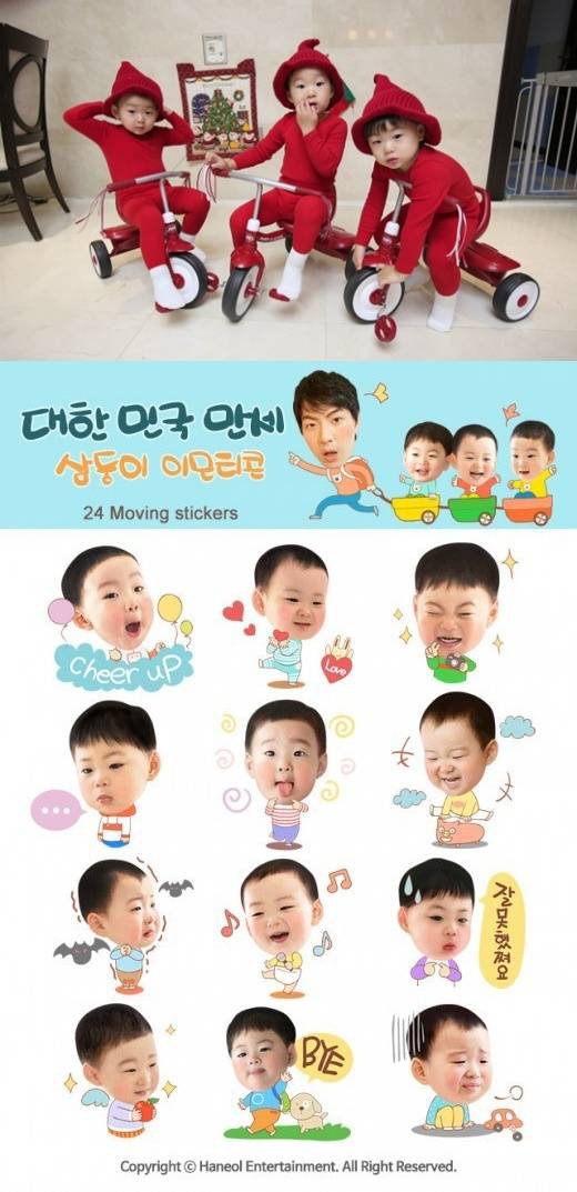 배우 송일국과 삼둥이 대한 민국 만세 부자가 최근 선보인 카카오톡 이모티콘의 판매 수익금을 소외계층 어린이들을 위해 기부한다.KBS 2TV '해피선데이-슈퍼맨이 돌아왔다'에 출연 중인 송일국과 삼둥이는 지난 11월 25일부터 카카오톡 아이템 스토어를 통해 이모티콘을 판매하고 있다. 평소 방송에서나 볼 수 있었던 깜찍하고 사랑스런 표정의 삼둥이들을 만나볼 수 있어 인기몰이 중이다.이번 이모티콘은 평소 나눔과 봉사에 관심이 많던 송일국이 삼둥이에 대한 전국민적인 사랑과 관심에 보답하고자 모바일 기부 활동의 일환으로 제작에 참여해 더욱 높은 호응을 얻었다. 송일국과 다음카카오의 매칭 기부를 통해 전달된 이번 수익금은 초록우산어린이재단을 통해 열악한 환경에서 추운 겨울을 보내고 있는 소외계층 어린이들을 위해 사용될 예정이다.송일국은 "우리 삼둥이 부자에게 많은 사랑을 주신 국민들에게 보답하는 마음으로 판매 수익금을 어려운 아이들을 위해 기부하게 됐다"며 "앞으로도 많은 아이들이 삼둥이처럼 해맑게 성장할 수 있도록 많은 나눔 활동에 참여하겠다"고 밝혔다.초록우산어린이재단 이제훈 회장은 “추운 겨울 날씨 속 힘겨운 연말을 보내는 아이들을 잊지 않고 사랑과 관심을 보내주셔서 감사하다”며 “보내주신 기부금은 보다 많은 아이들이 따뜻한 연말을 보낼 수 있도록 소중하게 사용하겠다”는 감사의 뜻을 전했다.한편, 송일국은 지난 2012년 초록우산어린이재단과 함께 KBS 희망로드대장정에 참여해 아프리카 부르키나파소의 메마른 대지 위에 모링가나무와 우물을 선물하는 등 꾸준히 봉사활동에 참여하며 나눔의 소중함을 몸소 전파하고 있다.[삼둥이 기부, 사진=초록우산어린이재단/ 삼둥이 이모티콘]