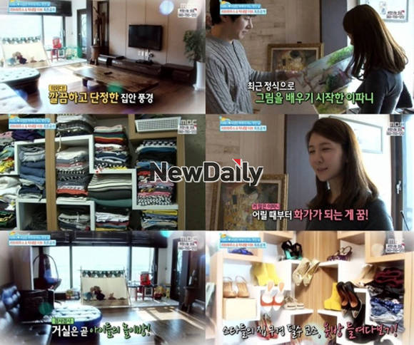 서성민 이파니 부부가 러브하우스를 공개했다.서성민 이파니 부부는 26일 오전 방송된 MBC '기분 좋은 날'에 출연해 남다른 부부애를 과시하며 소소한 일상을 소개했다.이날 영상을 통해 공개된 서성민 이파니의 집은 깔끔하고 단정한 풍경을 자랑했다. 특히, 이파니가 수집한 그림과 직접 그린 그림이 가득해 마치 갤러리는 연상케 했다.이파니는 "어린 시절 내 꿈이 화가였다. 그림을 좋아했는데 '굶어 죽는다'며 아버지의 반대했다. 그래서 지금은 그림을 모으는 게 취미가 됐다"고 밝혔다.또한, 가지런히 정리된 옷방에 대해 이파니는 "요즘 의류사업을 시작하다 보니 굉장히 바쁘다. 내가 이런 바쁜 일정을 소화할 수 있는 것은 남편 외조 덕이다"고 말했다.[서성민 이파니 집 공개, 사진=MBC '기분좋은날' 방송 캡처]