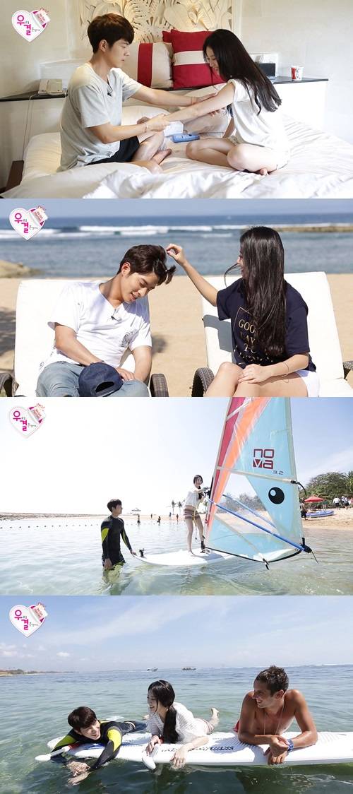 '우결' 홍종현 유라가 발리에서 즐거운 시간을 만끽한다.27일 방송될 MBC '우리 결혼했어요 시즌4'(이하 '우결')에서는 가상부부 홍종현 유라의 발리여행이 이어진다.이날 유라는 잠꾸러기 홍종현보다 먼저 일어나 홍종현이 좋아하는 커피와 컵라면으로 아침을 준비한다. 이어 두 사람은 생애 첫 윈드서핑에 도전했다.유라가 쓰고 나온 챙 넓은 모자를 홍종현에게 씌워주자 "아임 홍순~"이라며 받아주는 센스를 보이기도 했다. 이들을 지켜보던 외국인 조교가 "베리 뷰티풀~ 자기야~"라고 하자 유라는 "내 남편이야!"라고 발끈했다.본격적인 해양 스포츠를 즐기며 유라에게 "자기야~"라고 부르는 외국인 조교에 홍종현은 외국인 조교를 철통 방어하기도 했다. 유라는 발끈하는 종현의 질투하는 모습을 보고 기분 좋았다는 후문.또한, 해변가 데이트를 즐기던 유라는 종현에게 마지막 애교로 애교머리 묶기를 제안한다. '쫑순이'로 변신해 종현은 민망하기만 한데 반해 유라는 귀여워하며 신나하는 모습을 보인다.MBC '우리 결혼했어요'는 27일 오후 5시 방송된다.['우결' 홍종현 유라, 사진=MBC '우리결혼했어요']