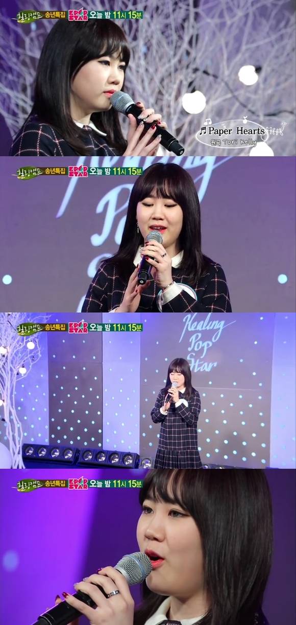 박지민의 감성 가득한 노래가 '힐링캠프'를 가득 채운다.12월 29일 방송되는 SBS '힐링캠프'가 겨울방학 특집으로 K팝스타들과 함께 할 것을 예고한 가운데, 방송 전 살짝 공개된 'K팝스타' 시즌1 우승자 박지민의 노래가 이목을 집중시키고 있다. 유튜브 SBSnow 계정에 박지민이 부른 'Paper hearts' 영상이 게재된 것.공개된 영상 속 박지민은 무대 중앙에 홀로 선 채 노래를 부르고 있다. 감미로운 피아노 선율에 더해진 박지민의 감성 풍부한 보이스가 듣는 이의 귀를 사로잡는다. 이와 함께 'K팝스타' 시즌1 우승자다운 박지민의 폭풍 성량과 가창력이 감탄을 자아낸다.'힐링캠프' 관계자에 따르면 최근 진행된 녹화현장에서 박지민이 해당 노래를 불렀을 때 '힐링캠프' MC, 스태프는 물론 그 자리에 함께 한 'K팝스타' 출신 가수들 역시 박수갈채를 쏟아냈다는 후문이다.'힐링캠프' 박지민 영상을 접한 네티즌들은 "정말 들을 때 마다 놀라운 박지민의 노래실력", "이렇게 노래를 잘하다니!", "나이가 안 믿기는 가창력", "감성이 참 풍부합니다", "귀호강 제대로", "오늘 무조건 본방사수" 등의 반응을 보였다.박지민 노래의 깜짝 선공개로 더욱 기대를 모으고 있는 SBS '힐링캠프' 겨울방학 특집은 12월 29일 오후 11시 15분 방송된다.['힐링캠프' 박지민 가창력, 사진=SBSnow 영상 캡처]