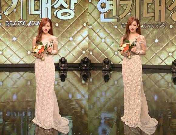 배우 이유리가 대상 수상후 트로피를 들고 여신 자태를 뽐냈다.영예의 대상을 수상한 이유리의 시상식 직후 비하인드 컷이 공개됐다.공개된 사진 속 이유리는 대상 트로피를 한 손에 들고 레이스 소재의 우아한 라인지난 30일 MBC 상암 신사옥에서 열린 '2014 MBC 연기대상’에서 '왔다! 장보리'로의 화이트 톤 머메이드 드레스로 자체 발광 미모로 여신 자태를 뽐내며 눈길을 끌고 있다.이날 이유리는 악역에 조연이라는 한계를 극복하고 대상을 수상하며 이목을 집중 시켰다. 특히, 이번 MBC 연기대상은 100% 시청자 투표로 진행돼 시청자가 직접 뽑은 대상이기에 그 어떤 상보다도 더욱 의미가 있었다.이유리는 "캐스팅 되야 그 역할을 할 수 있고 선택을 해주셔야 연기를 할 수 있다"며 "연민정 캐릭터를 할 수 있게 기회를 주신 감독님, 작가님 감사하다"고 대상 수상 소감을 밝혔다.이어 "이유리라는 이름이 대상에 거론된 게 아니라 대상이……”라며 쏟아지는 눈물에 말을 잇지 못했다. 이유리는 함께 작품 만든 스태프와 가족들에게 감사 인사를 전하며 감동적인 수상 소감으로 안방 극장을 훈훈하게 만들었다.한편, 'MBC 연기대상' 대상 수상자 이유리의 MC로서의 모습을 볼 수 있는 'MBC 가요대제전'은 31일 밤 8시 55분에 방송된다.['MBC 연기대상' 이유리 비하인드컷, 사진=MBC]
