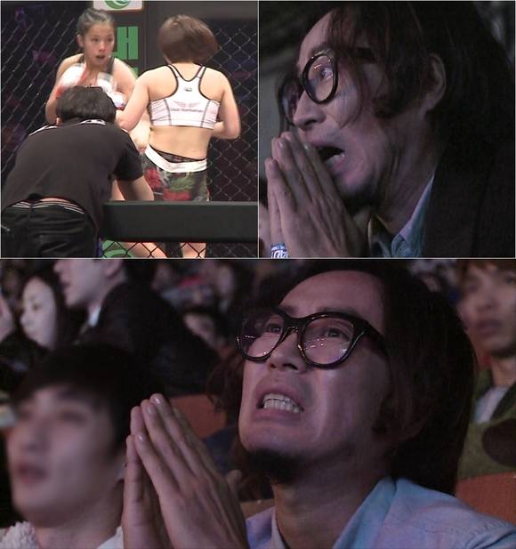 또한 자세를 바로 잡고 경건한 표정으로 송가연의 격투경기를 누구보다 진지하게 지켜봤고, 경기가 끝나자 그의 열정에 울컥한 듯 얼굴을 감쌌다.